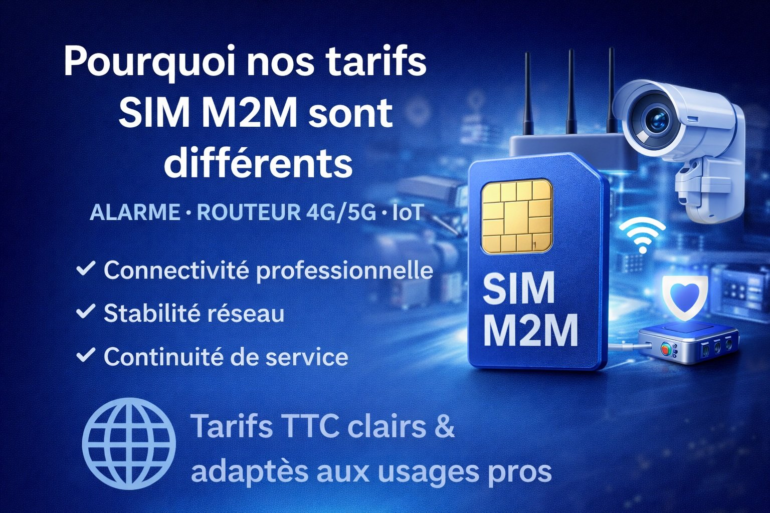 Comprenez les différences entre une carte SIM M2M multi-opérateur et une carte SIM classique. Nos solutions sont conçues pour offrir une fiabilité maximale, une connexion continue et une sécurité renforcée pour vos équipements critiques : alarme, routeur 4G/5G, vidéosurveillance et IoT.